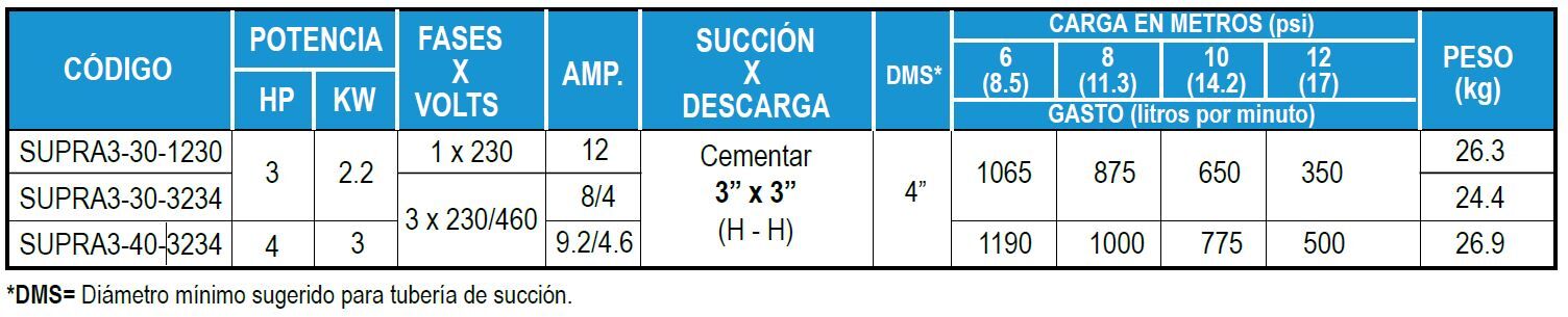 • Mayor flujo en modelos de 3 y 4 Hp